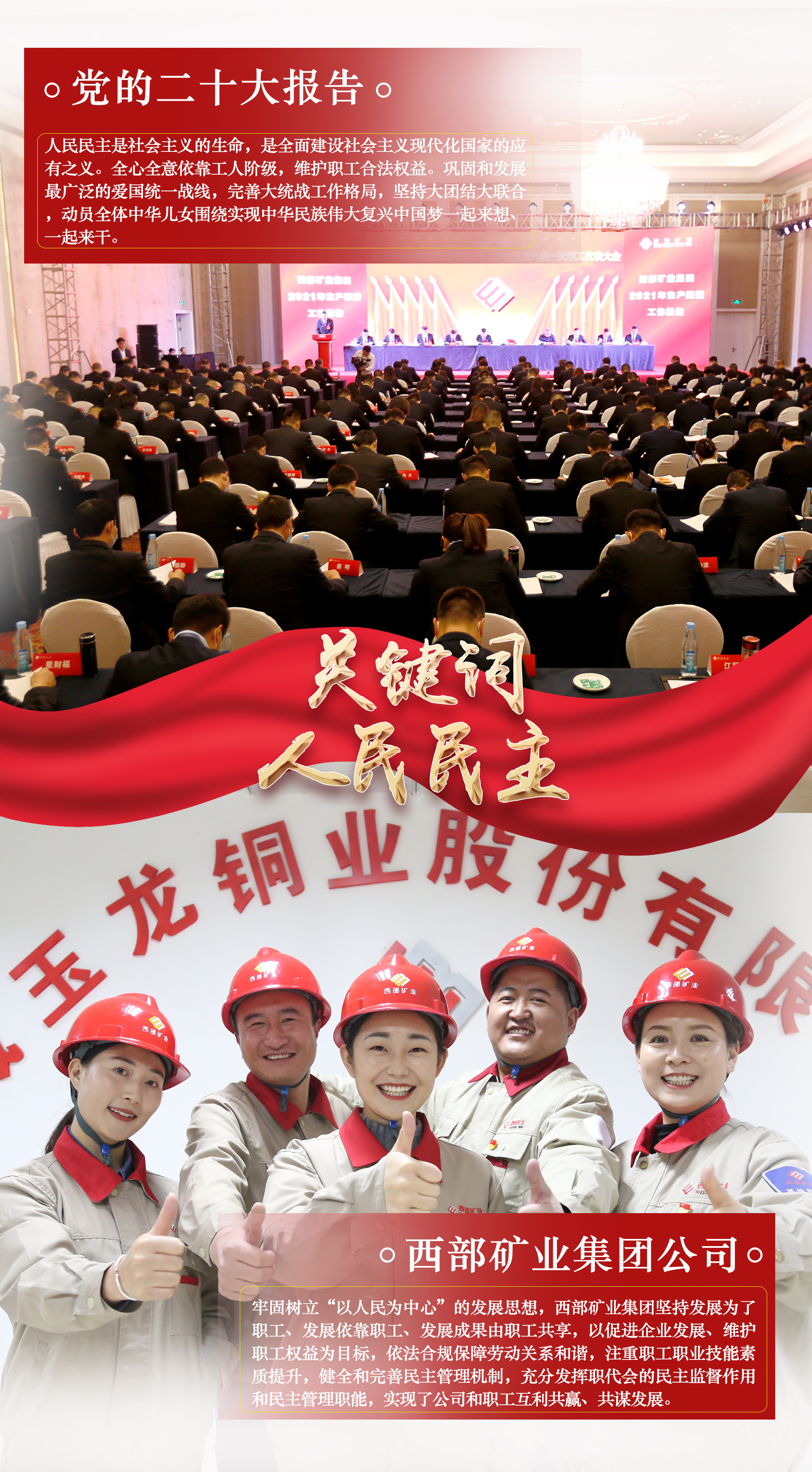 • 把蓝图变为现实,是一场新的长征。党的二十大报告是全面建设社会主义现代化国家新征程上的宣言书、动员令、集结号。细读报告中的这些“关键词”,无不说到了西矿人的心坎上,更加坚定了推动公司高质量发展行稳致远的信心与决心,纷纷表示要切实把思想和行动统一到党的二十大精神上来,锚定党的二十大关键词,撸起袖子加油干,用新的伟大奋斗创造新的伟业,为全面建设社会主义现代化国家、全面推进中华民族伟大复兴贡献西矿力量。本期专栏,用一组海报分享西矿人眼中的“二十大关键词”。