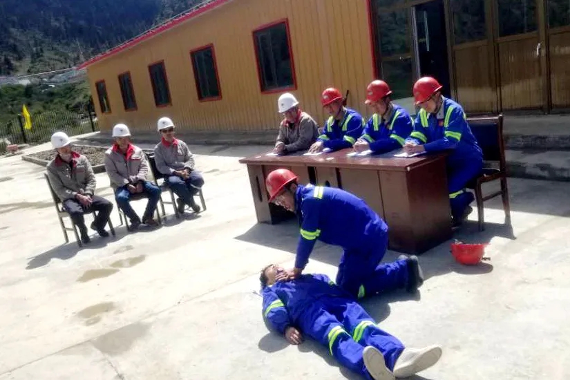 鑫源矿业组织全体员工观看安全事故警示教育片,开展矿区医疗急救应急演练等活动,并在办公楼张贴宣传海报、悬挂横幅,宣传安全理念。