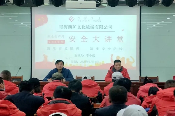 西矿文旅公司在茶卡盐湖景区组织开展“安全大讲堂”讲座,讲座结合近年来省内外景区安全事故案例,对影响安全事故的心理因素、事故原因分析、景区安全防治与管理等相关旅游景区安全管理知识进行详细解读。