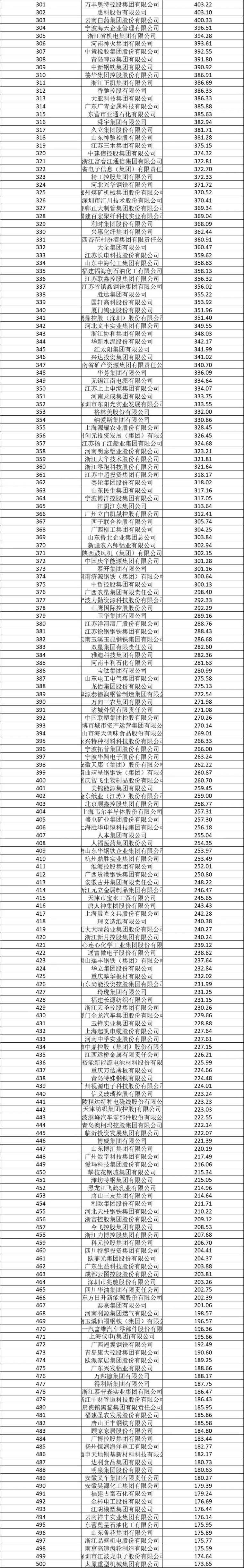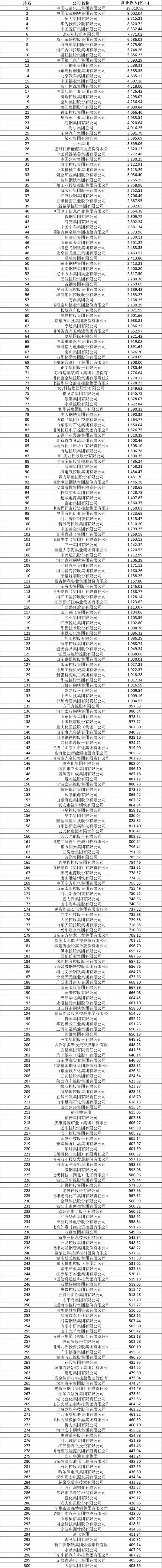 2025中国制造业企业500强